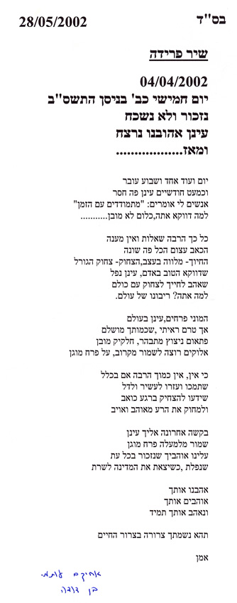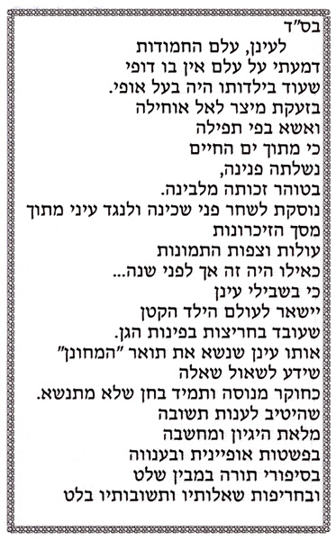 כריכת הספר לזכרו